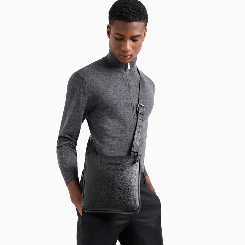 【情人节礼物】EMPORIO ARMANI/阿玛尼秋冬男士荔枝纹斜挎邮差包