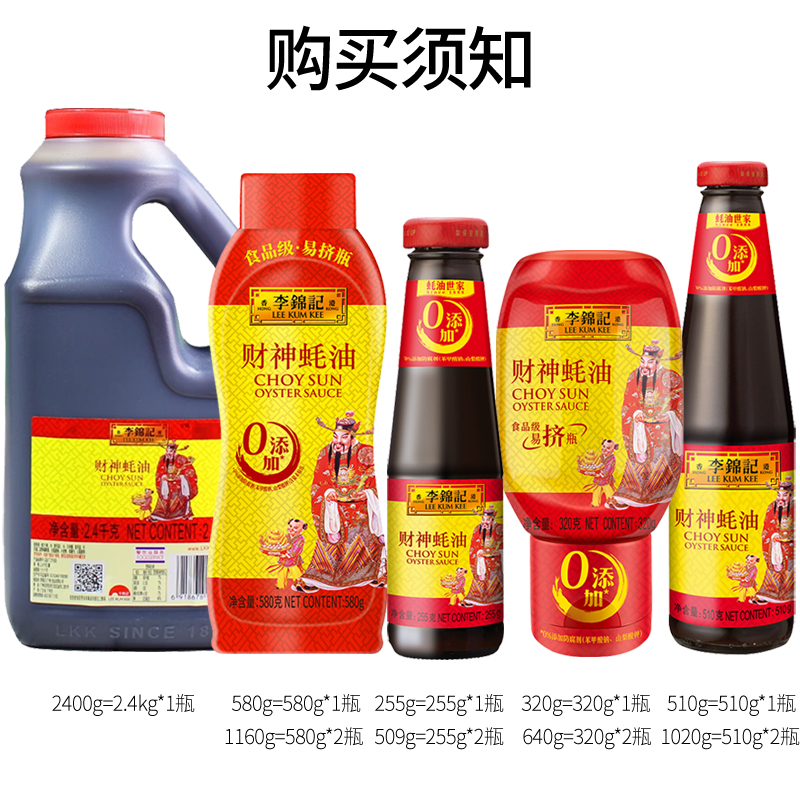 多规格可选李锦记财神蚝油炒菜腌制火锅蘸料耗油汁厨房家用调味品