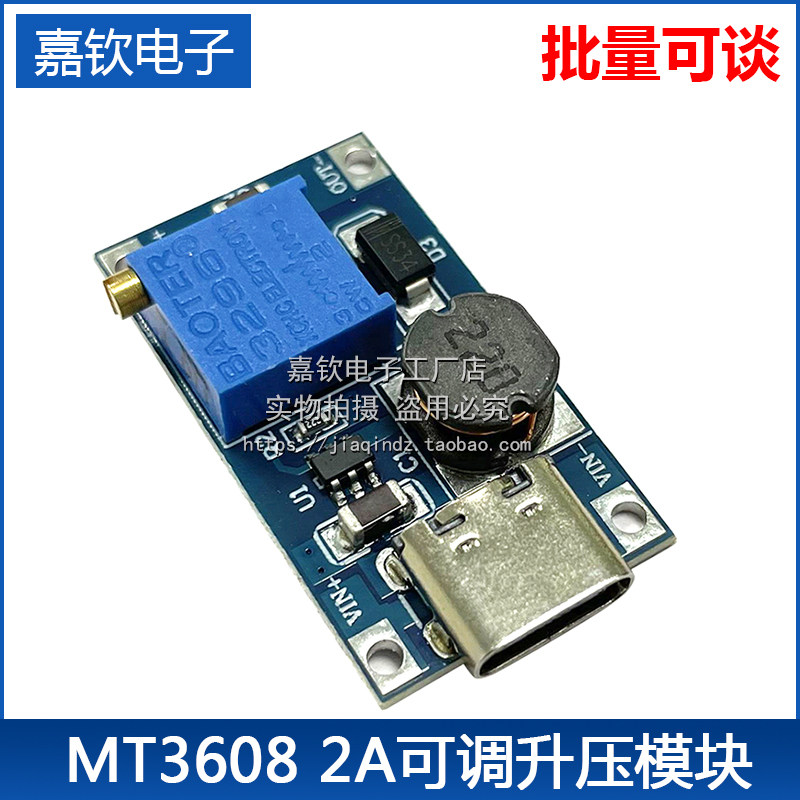 MT3608 DC-DC升压板2A可调电源模块TYPE-C接口 3.7V/5V转/12V/24V