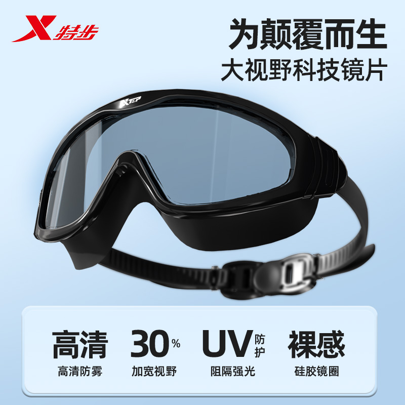 特步泳镜男款高清防雾防水女近视带度数大框游泳眼镜成人泳帽套装