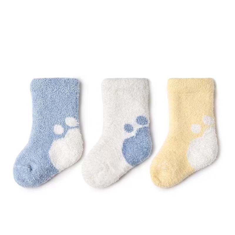 婴儿袜子宝宝秋冬款男女童珊瑚绒新生儿冬季保暖初生幼儿中筒袜