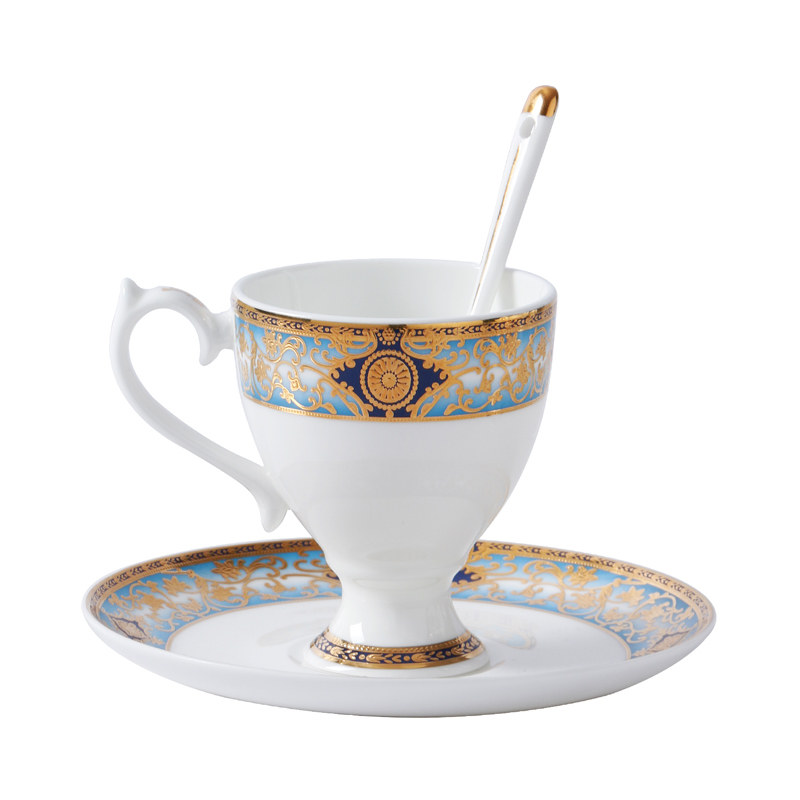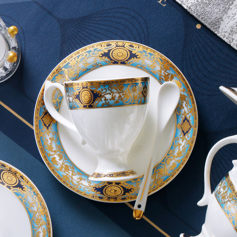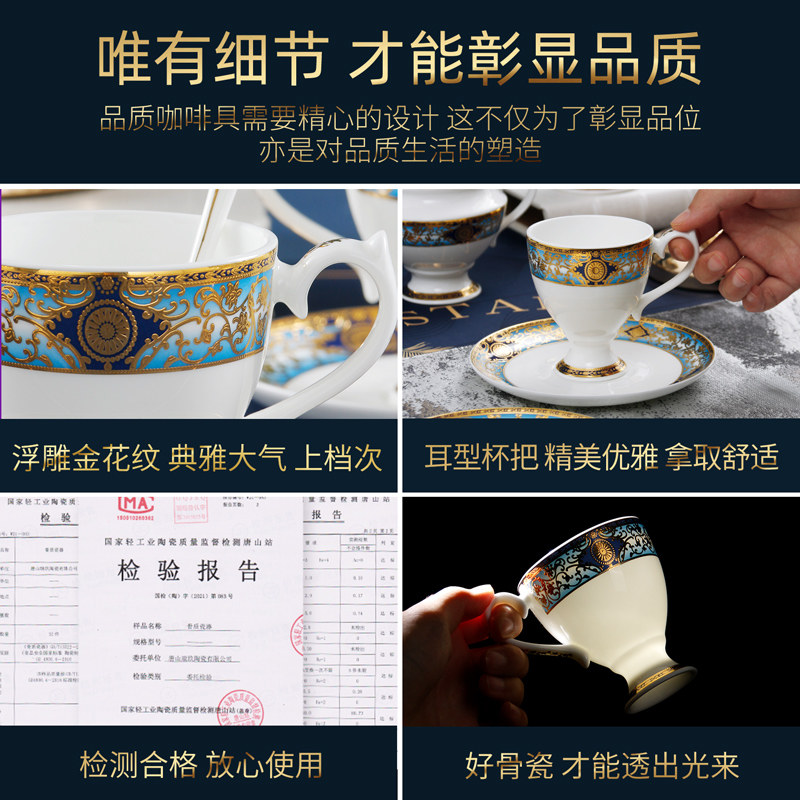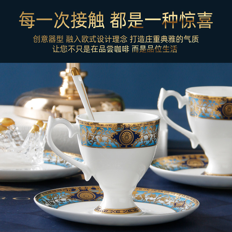欧式浮雕金下午茶茶具家用品质骨瓷咖啡杯碟套装送勺乔迁礼盒送礼
