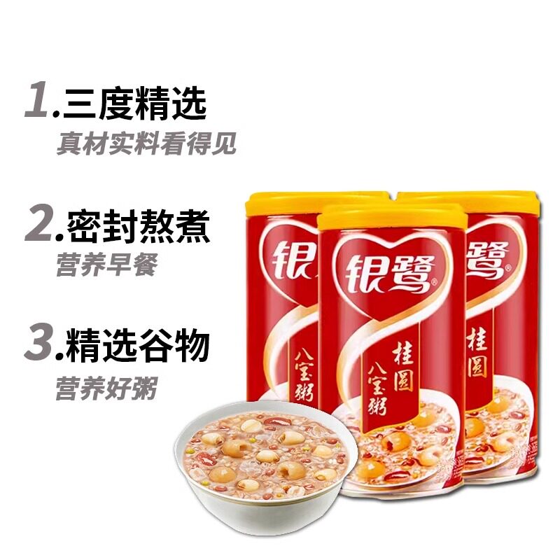 银鹭八宝粥桂圆莲子360g大罐早餐速食粥五谷杂粮整箱装低糖
