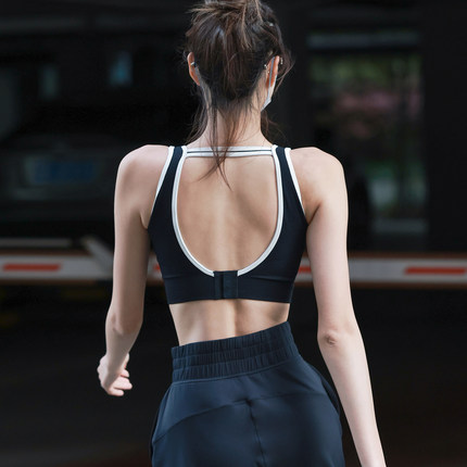Beemen一体式固定杯运动内衣女外穿防震聚拢U型健身瑜伽美背文胸