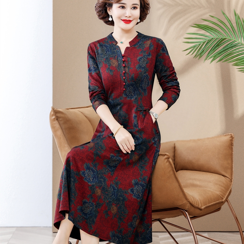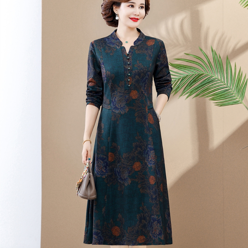 2025年春秋新款妈妈洋气长袖中长款连衣裙中老年夏装大码遮肚裙子