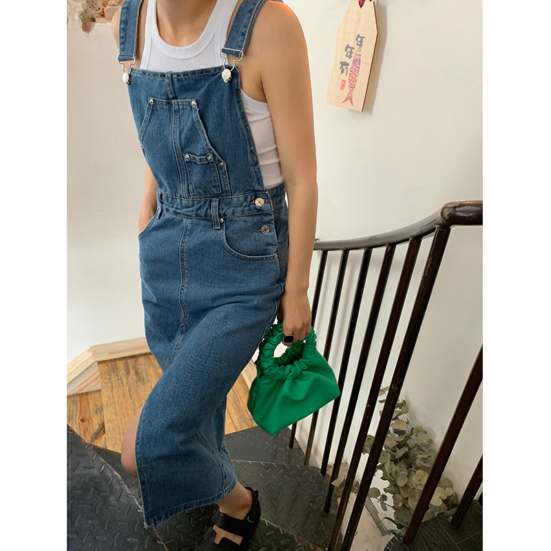 落落娟介牛仔连衣裙女背带裙