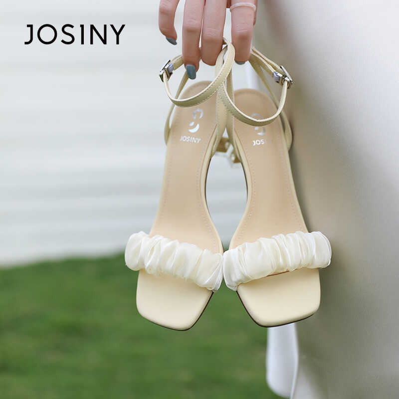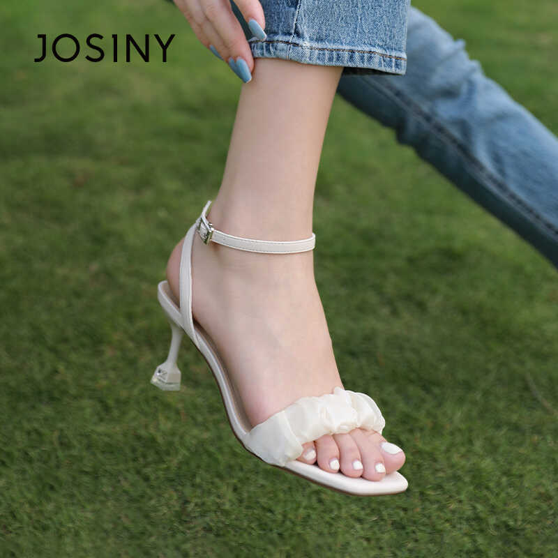 卓诗尼女鞋夏露趾细跟凉鞋撤柜正品鎏金网纱鞋面一字扣带时尚百搭