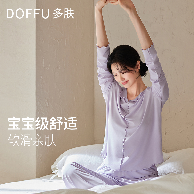 莫代尔睡衣秋女款2025新款秋季长袖女士套头紫色家居服冰丝高级感