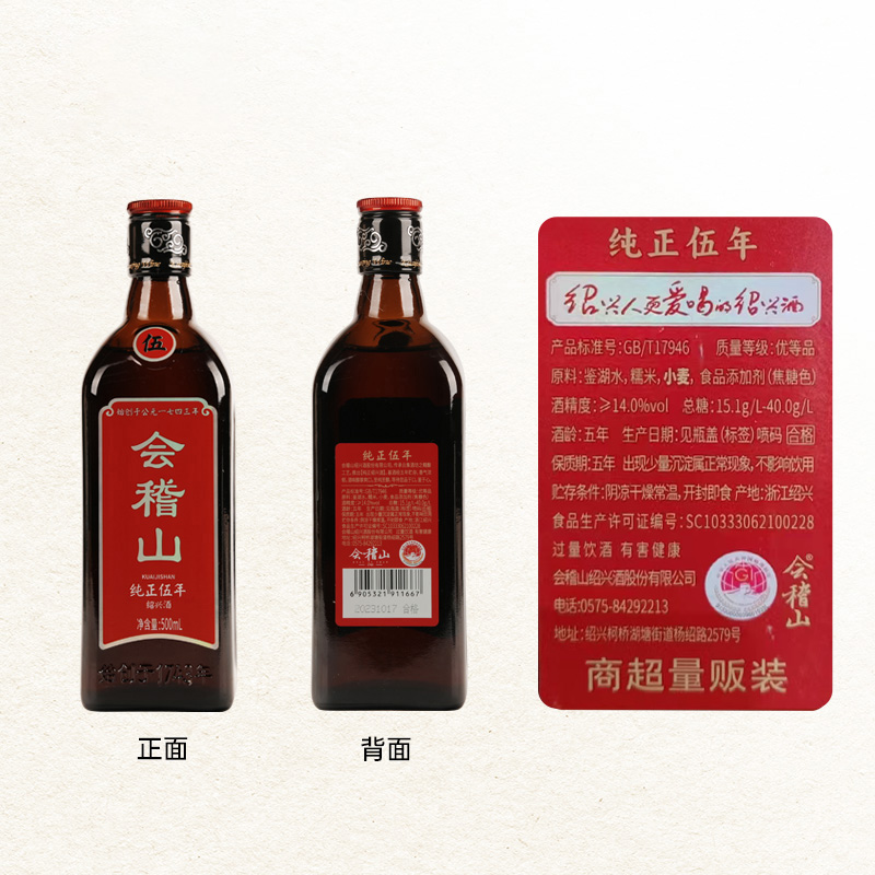 会稽山 黄酒绍兴黄酒花雕酒正宗老酒特产纯正五年500ml*1瓶加饭酒
