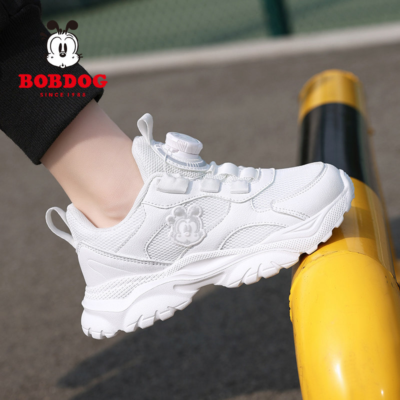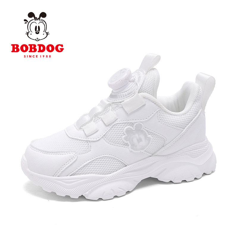 巴布豆儿童小白鞋女童鞋2025新款夏季网面透气学生男童白色运动鞋