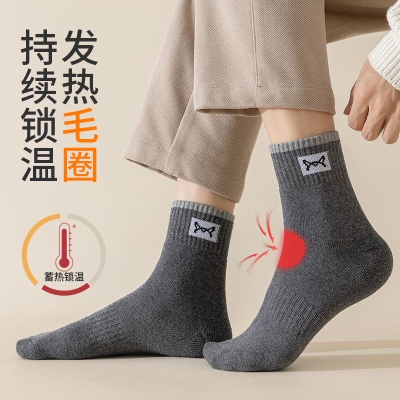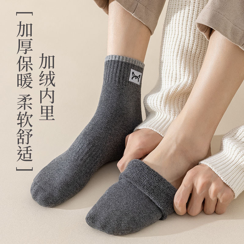 猫人袜子男款秋冬季加绒加厚保暖中筒袜抗菌防臭吸汗男士长筒棉袜