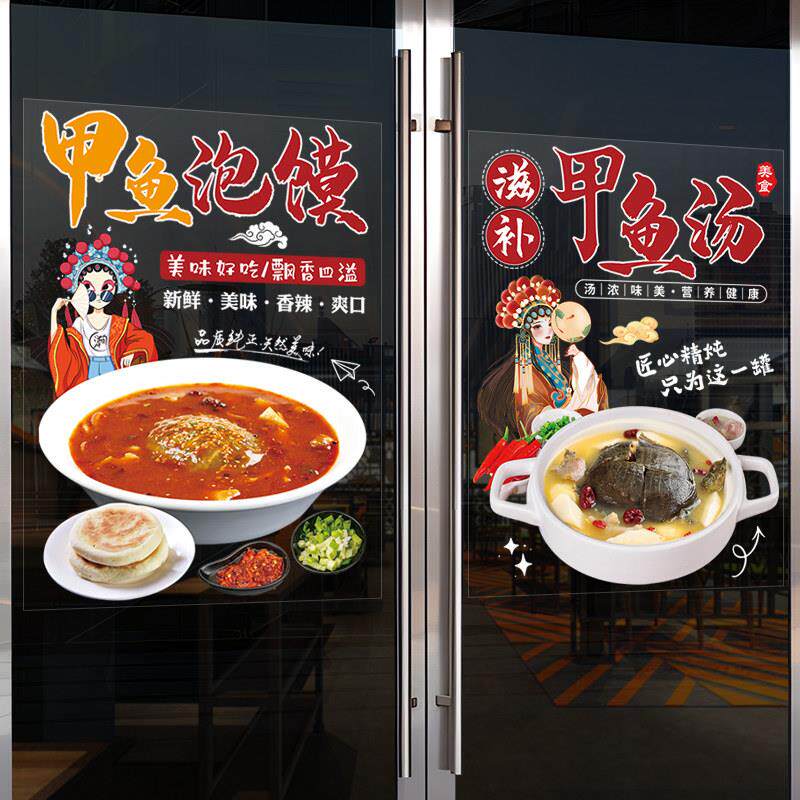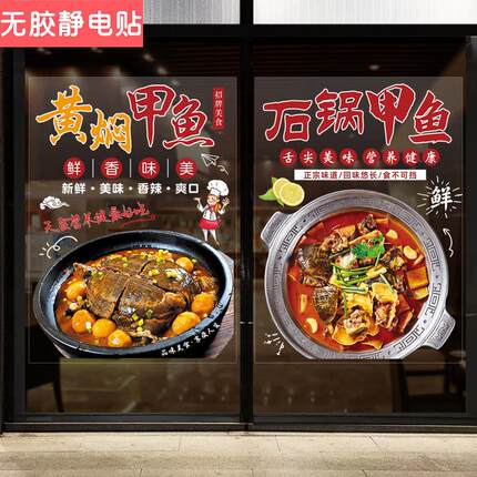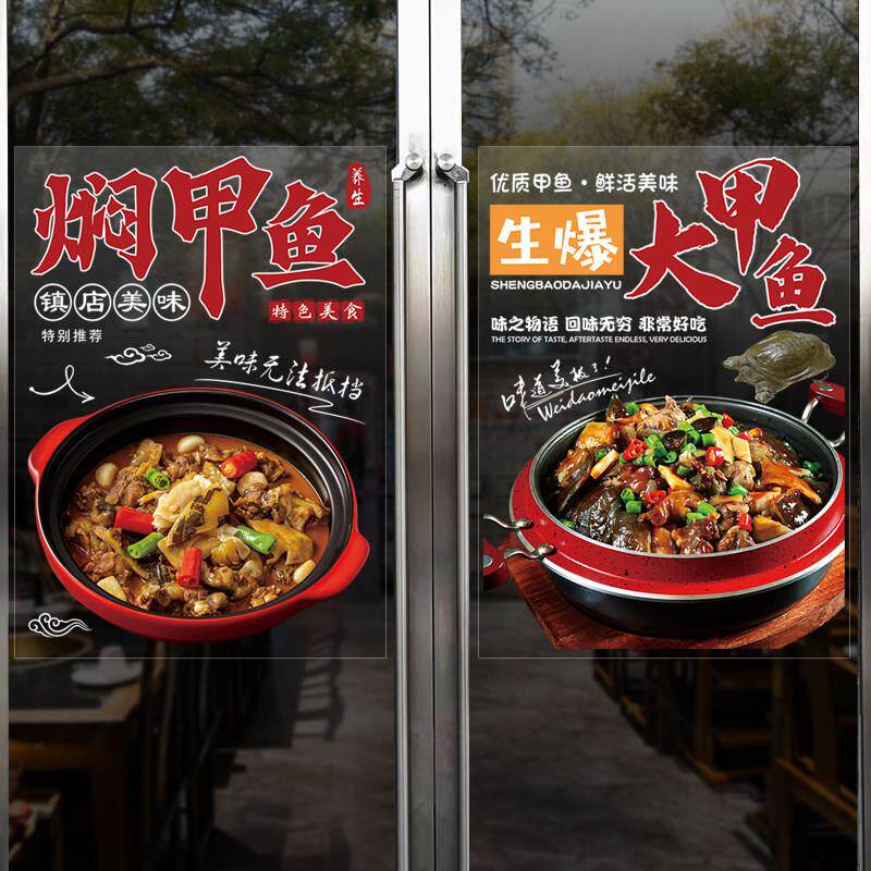 甲鱼火锅玻璃橱窗门贴纸广告宣传创意装饰海报餐馆饭店鸡鸽墙贴画