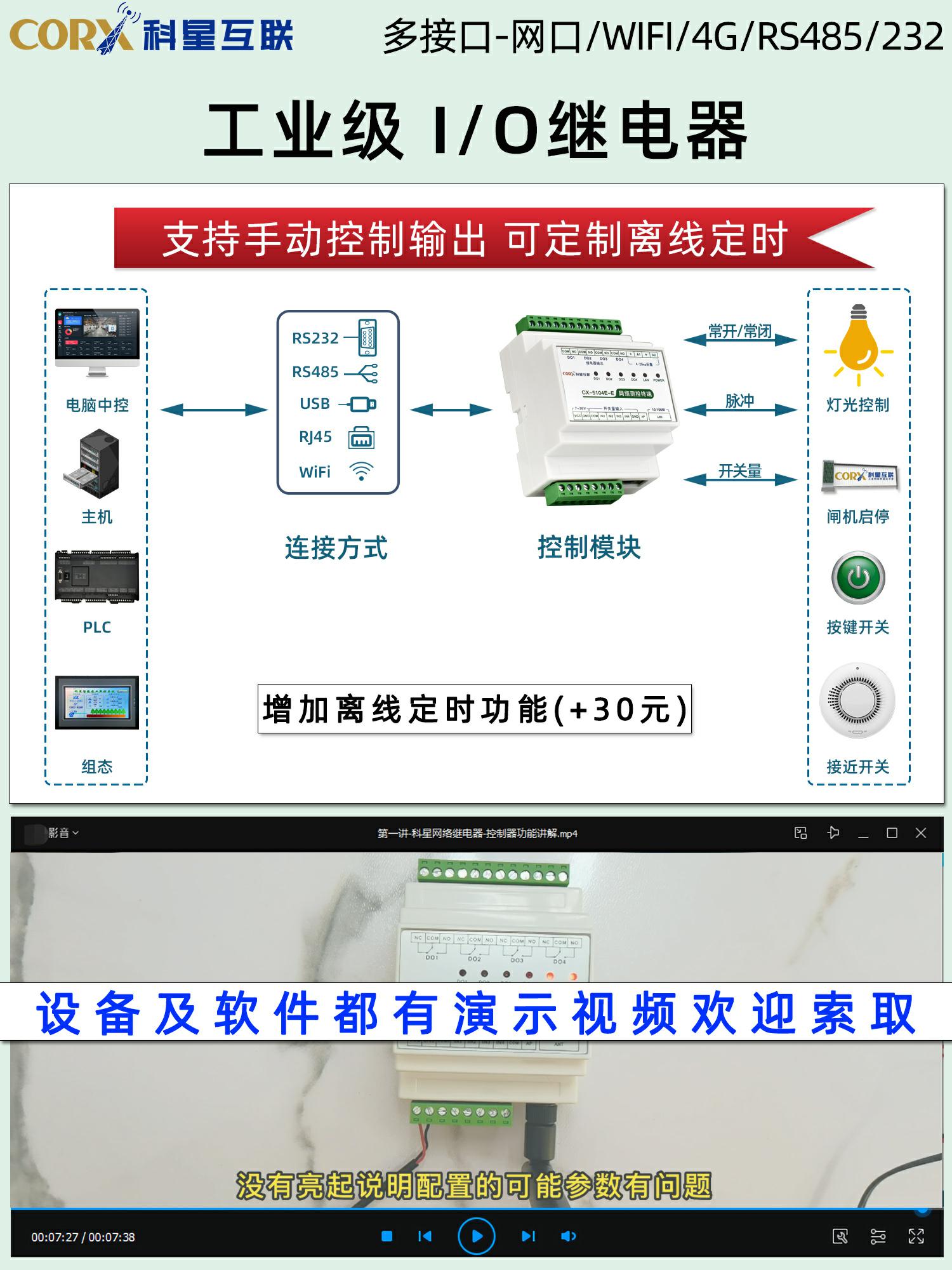 485网络继电器控制板开关量wifi串口232rtu模块输入输出定时联动