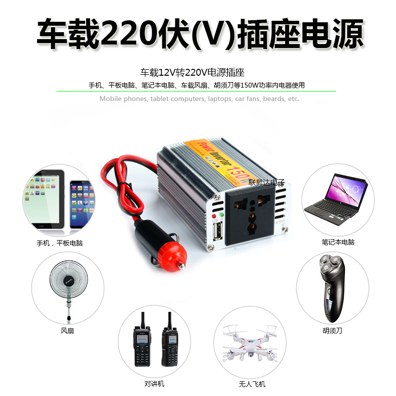 150W车载逆变器升压器 12V转220V 汽车电源转换 点烟器电压转换