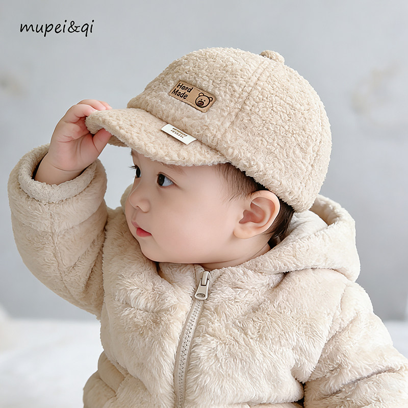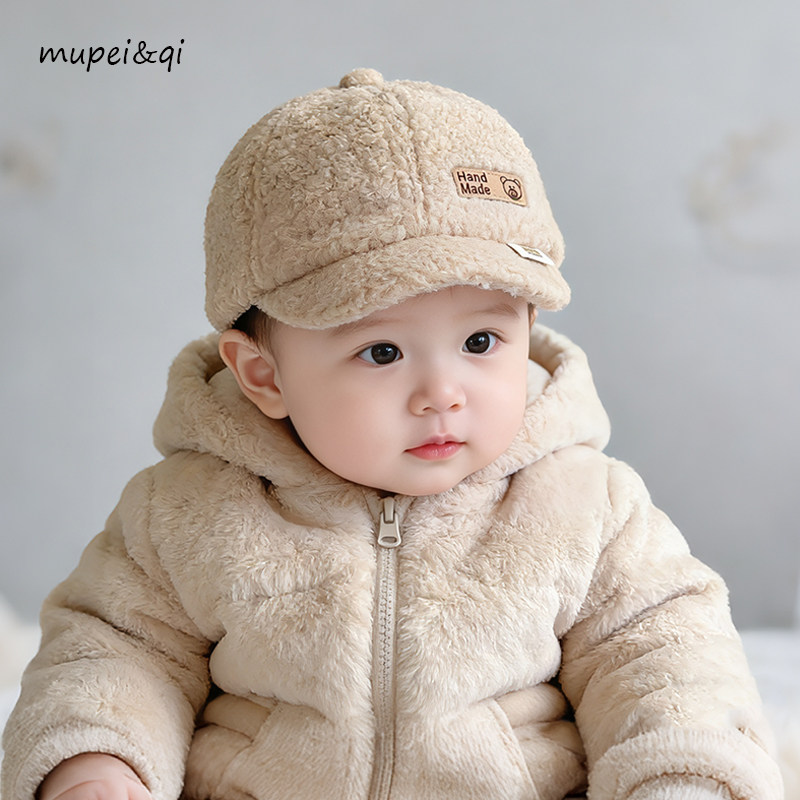 宝宝羊羔毛棒球帽男女保暖鸭舌帽