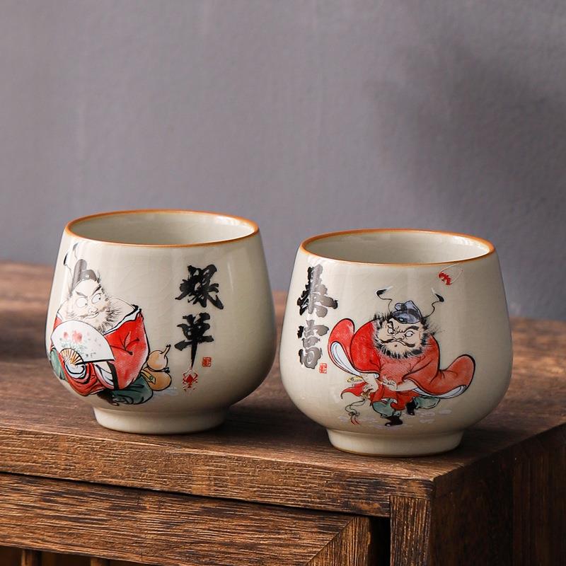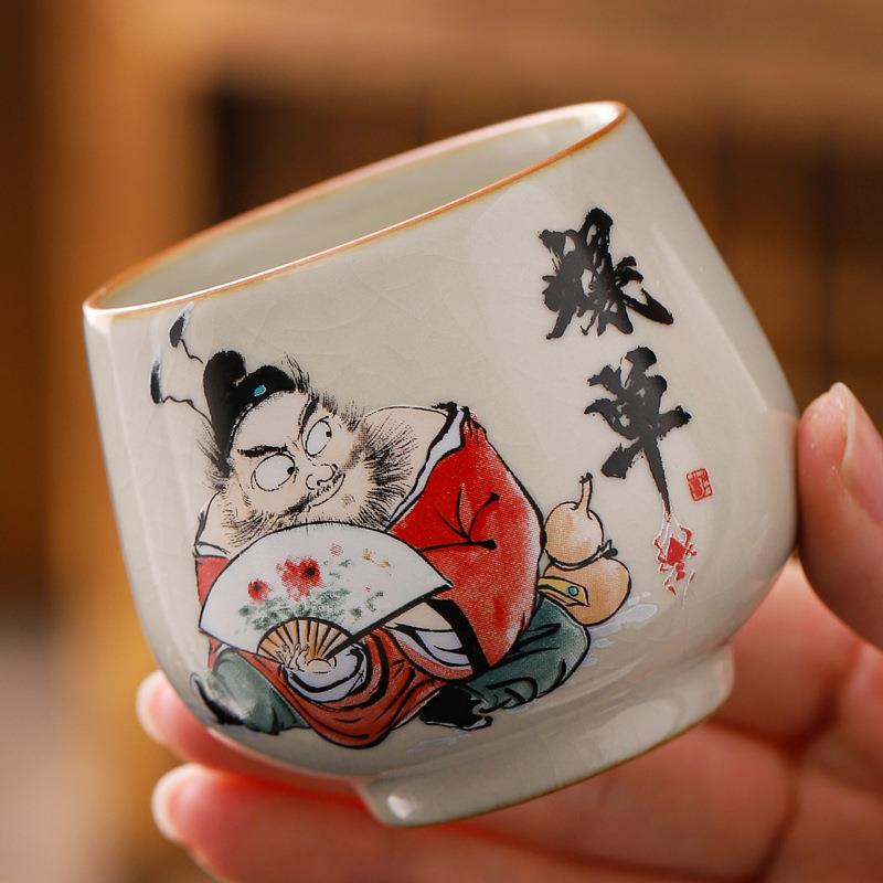 汝窑创意钟馗主人杯陶瓷黄汝开片即可养单杯功夫茶具品茗杯
