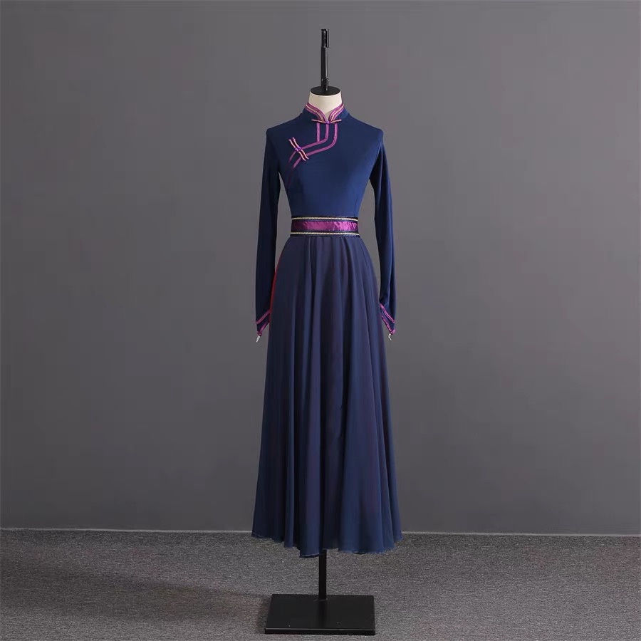蒙古舞蹈演出服女成人大摆裙学生练功服艺考长裙民族舞台装表演服