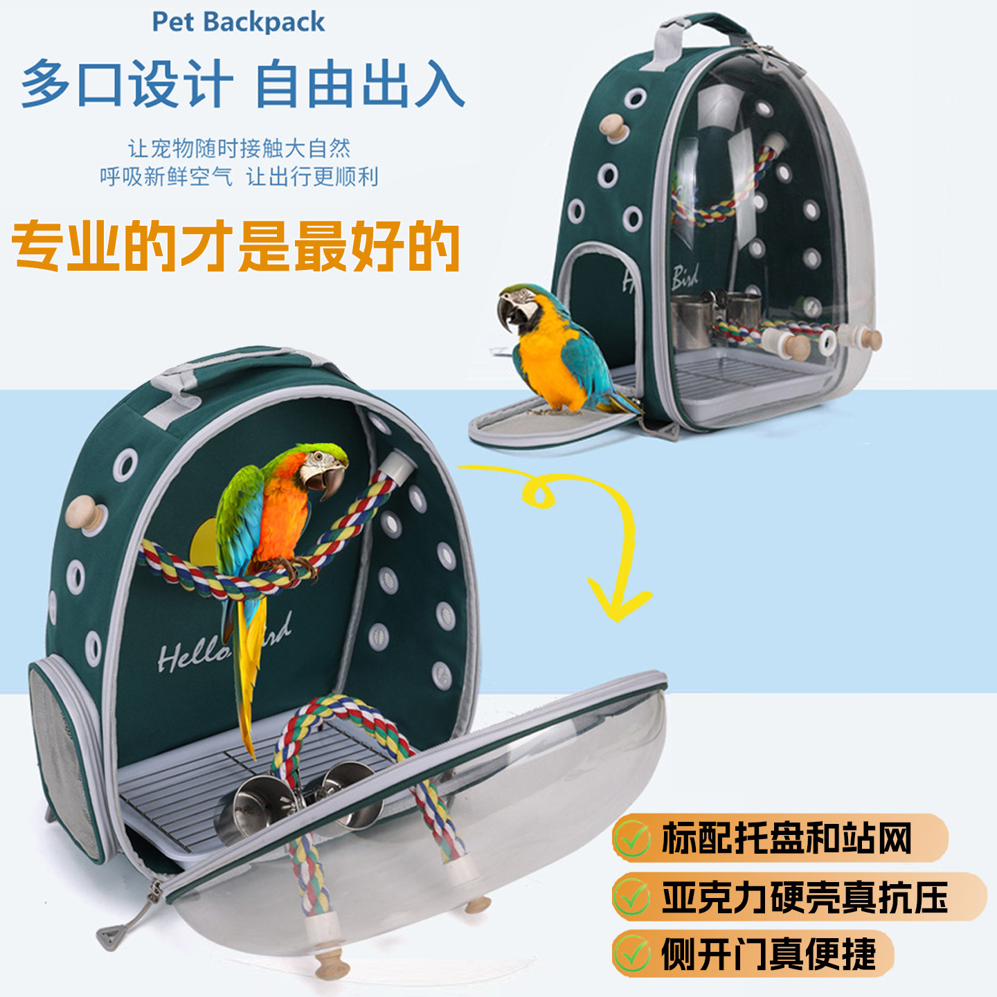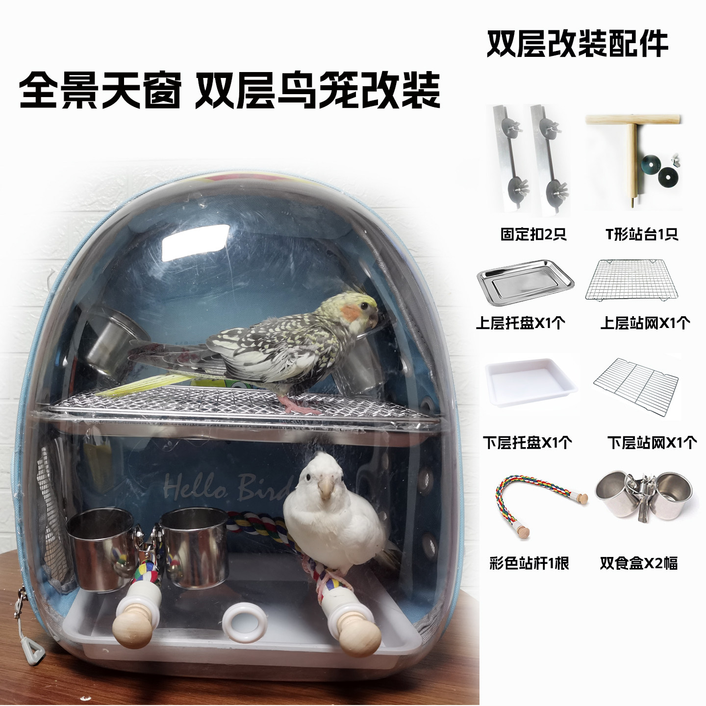 定制双层鹦鹉包透明全景天窗便携外出鸟笼宠物外带背包双层外出笼