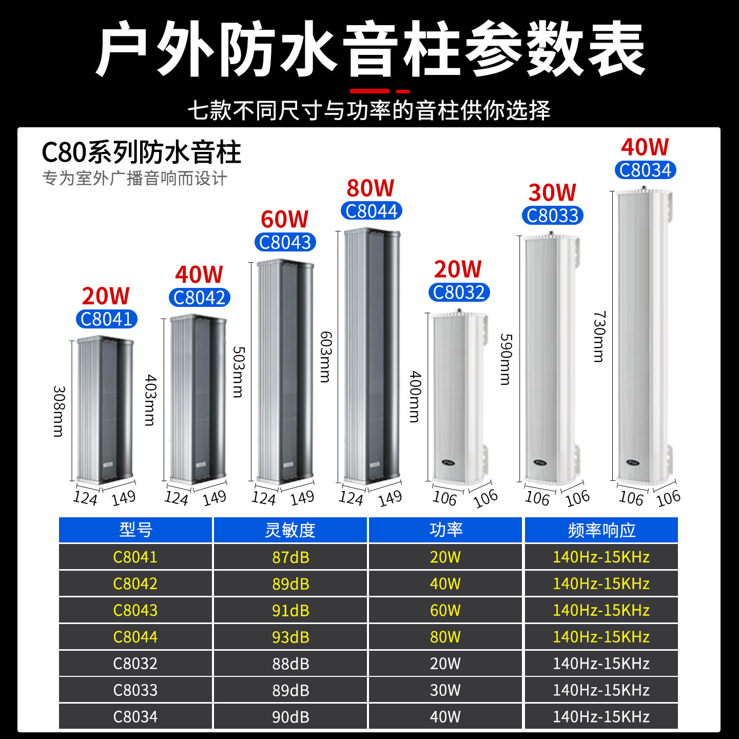 Hivi/惠威 C8032防水音柱20W防水音箱30W 40W室外壁挂音响C8041