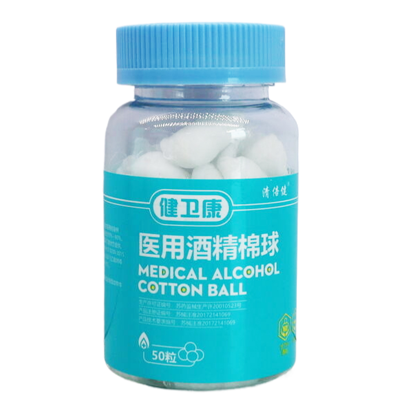 健卫康医用酒精棉球50粒完整皮肤消毒一次性医疗用品官方正品