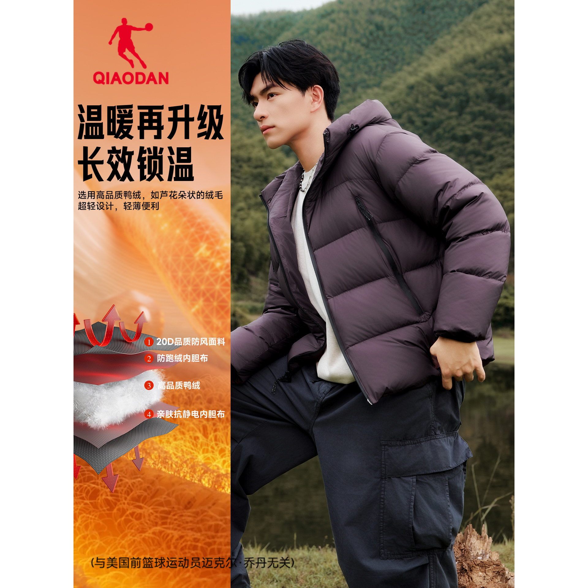 乔丹被窝保暖羽绒服男士新款