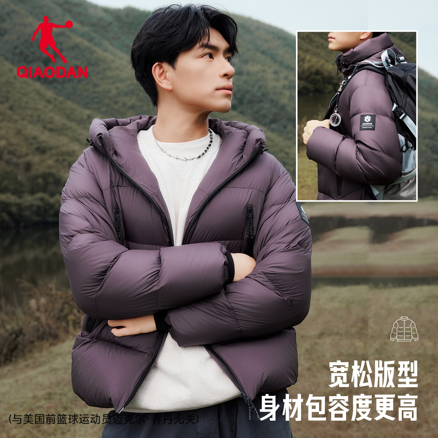 乔丹被窝羽绒服男士2025冬季新款抗静电连帽防风加厚保暖户外外套