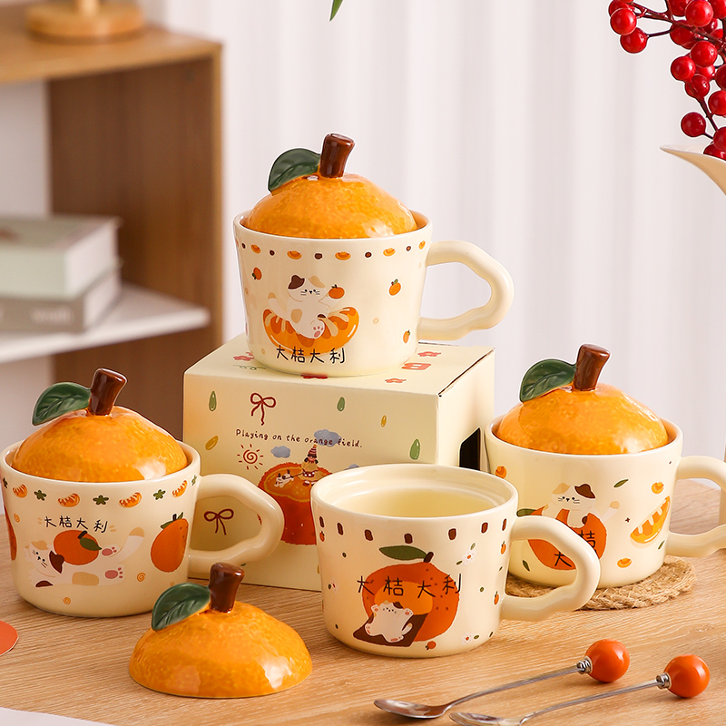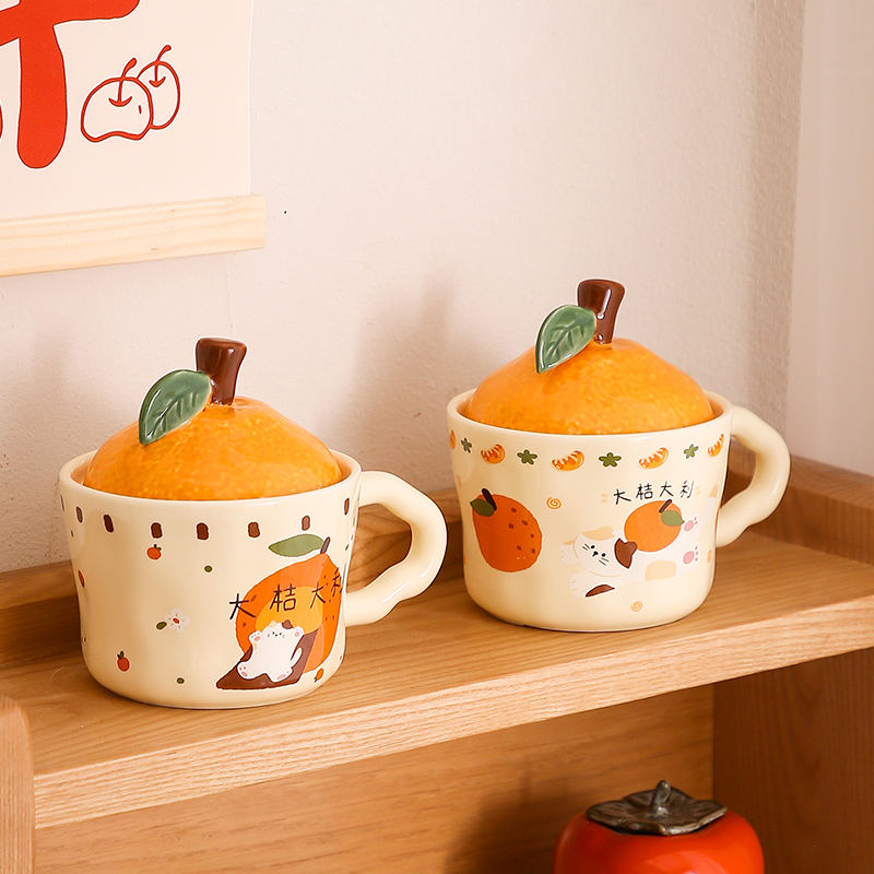 2025新年橘子水杯女生日礼物伴手礼陶瓷杯子可爱办公室马克杯带盖