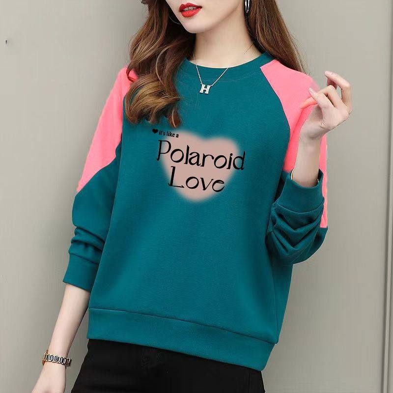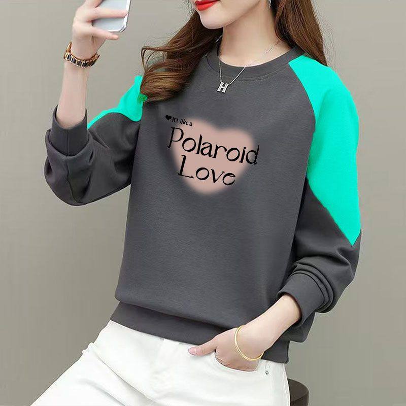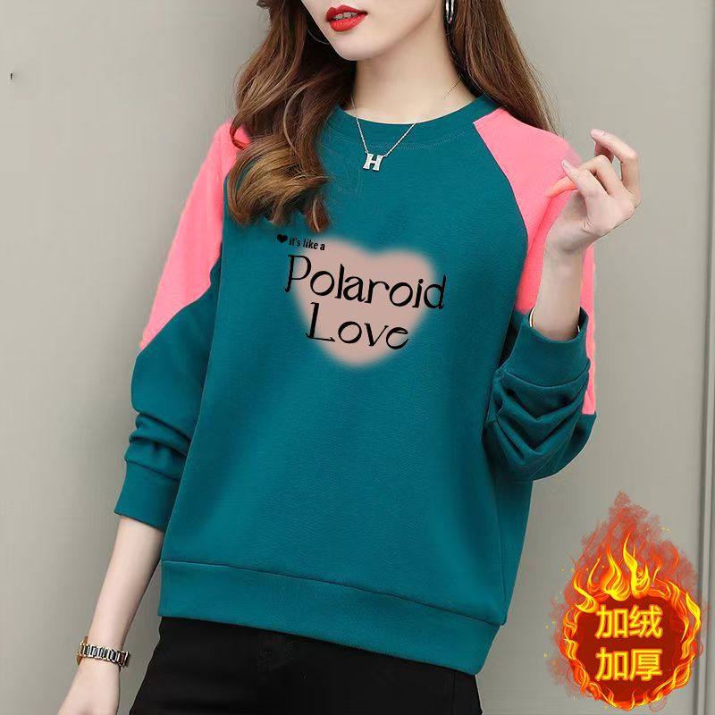 纯棉圆领卫衣女2025新款秋冬季加绒加厚宽松减龄长袖拼接上衣外套