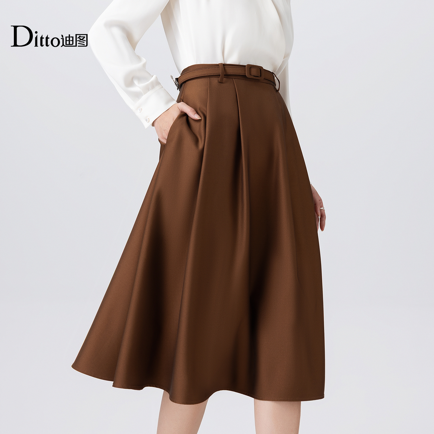 迪图2025秋冬新款经典赫本风伞裙法式优雅收腰显瘦百搭高腰半身裙