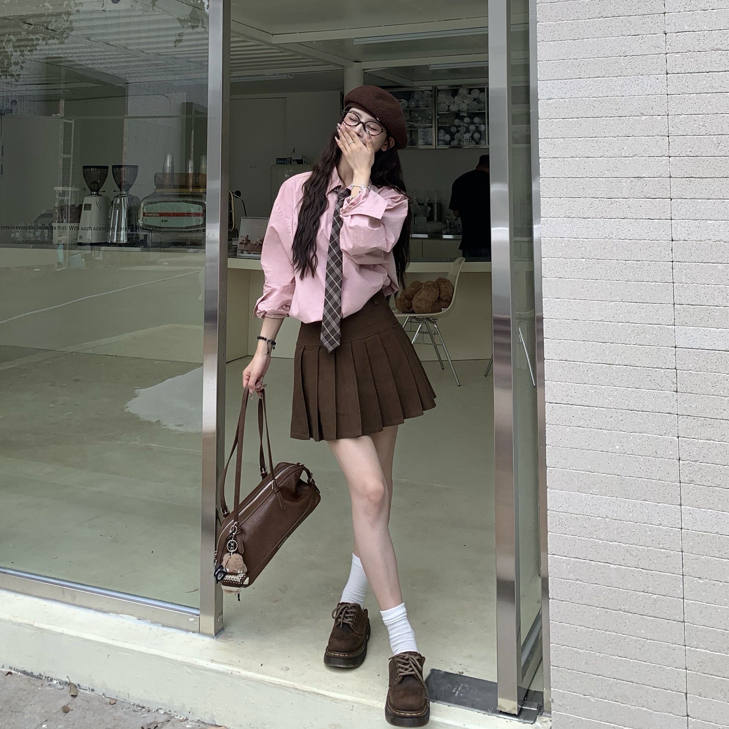 3MER哦哦三妹 粉色长袖衬衫女2025秋季新款法式通勤百搭气质上衣