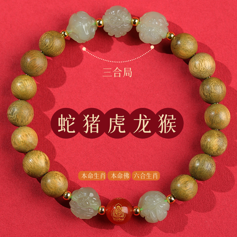 2025蛇年本命年手链男女桃木三合六合手串属蛇猪虎龙猴吉祥佩戴物