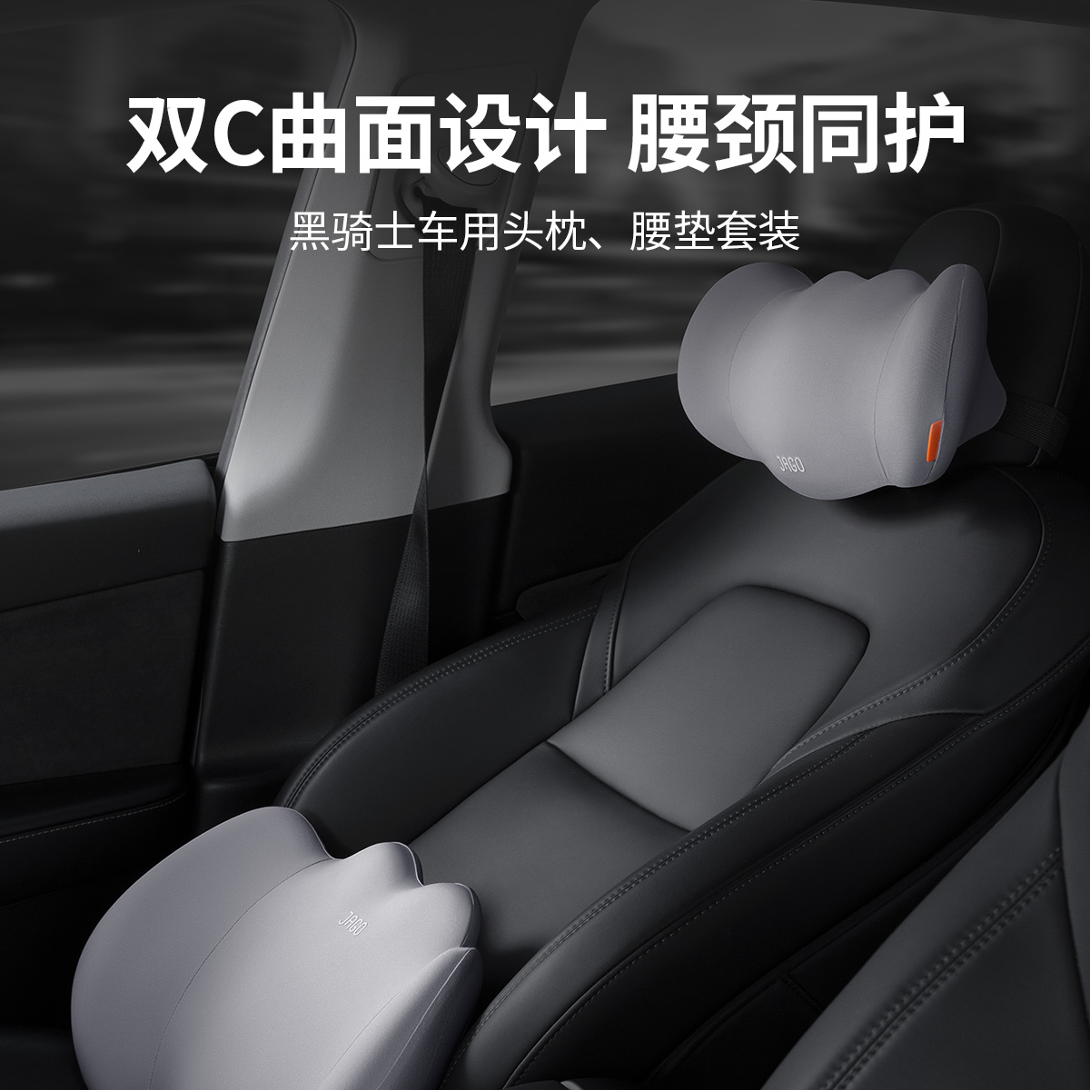 黑骑士车内头枕护颈枕车用腰靠垫汽车睡枕记忆棉套装四季头颈枕