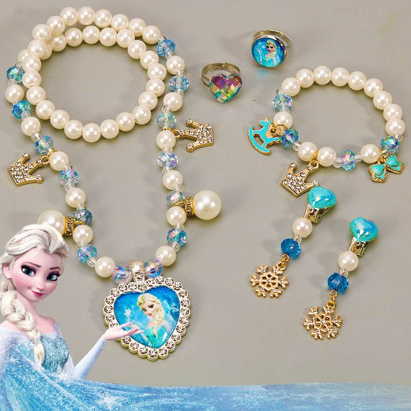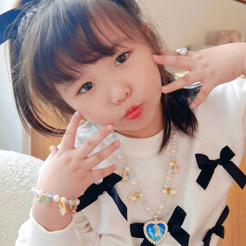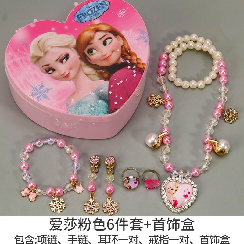 儿童项链女童公主可爱手链首饰盒套装宝宝化妆盒戒指艾莎耳环耳夹