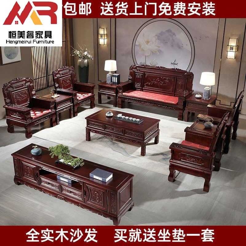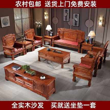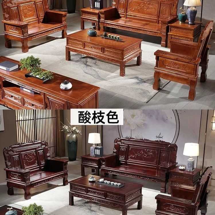 新款直销全实木沙发组合中式木质客厅冬夏两用明清古典仿古雕花经