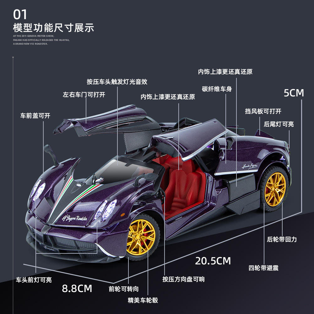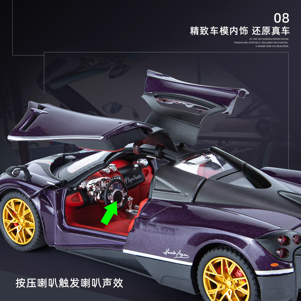新款 车致1:24/18帕加尼中国龙大号合金声光仿真模型玩具汽车