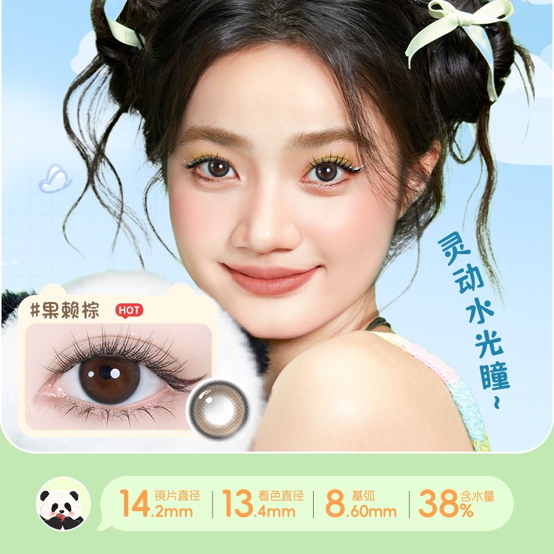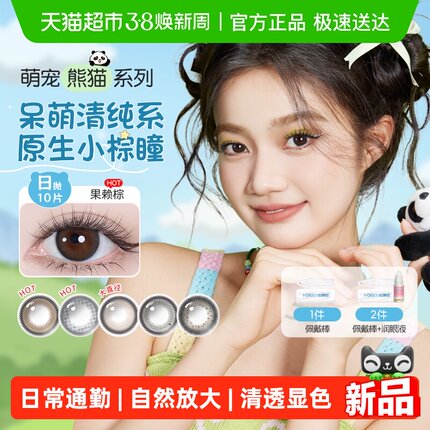 海俪恩萌宠熊猫美瞳日抛彩色隐形眼镜大直径果赖棕