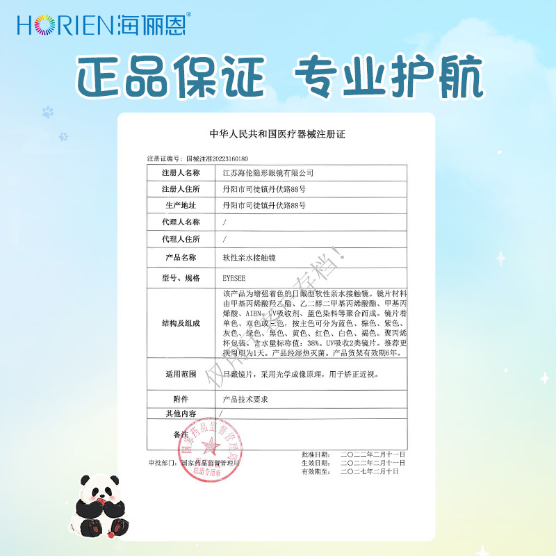 海俪恩萌宠熊猫彩色隐形眼镜日抛