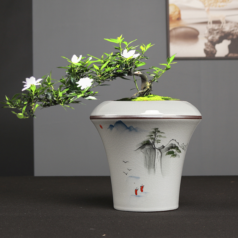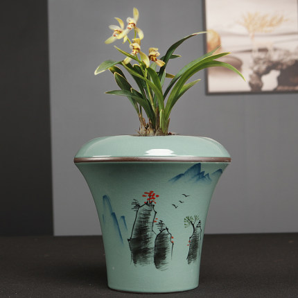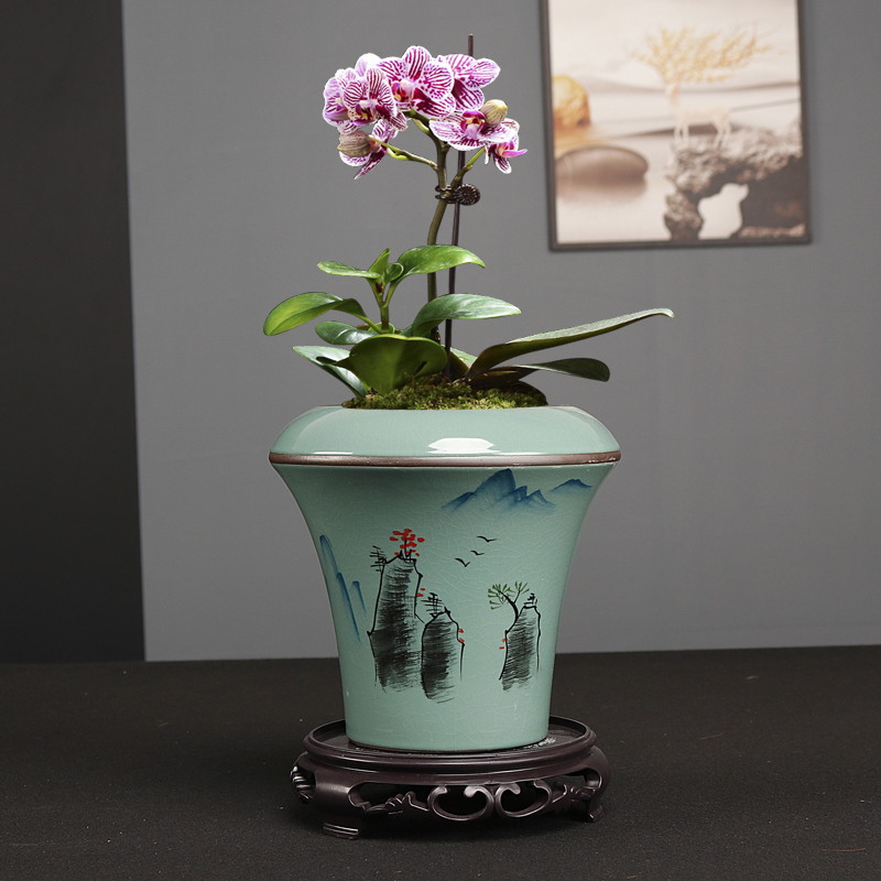 简约紫砂花盆造景盆栽蝴蝶兰兰花文竹绿植多肉植物哥窑透气陶瓷盆