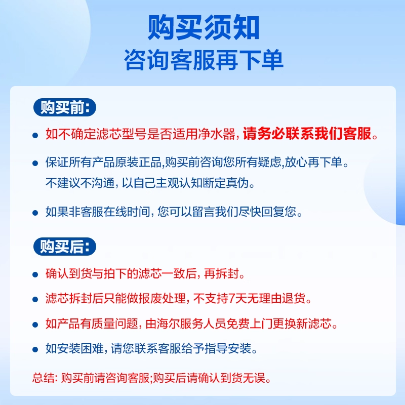 海尔净水器滤芯全系PCB滤芯RO膜PP棉颗粒活性炭反渗透官方旗舰店