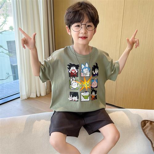 卡通蛋仔男童睡衣夏季薄款纯棉空调服小男孩初中生短袖套装可外穿