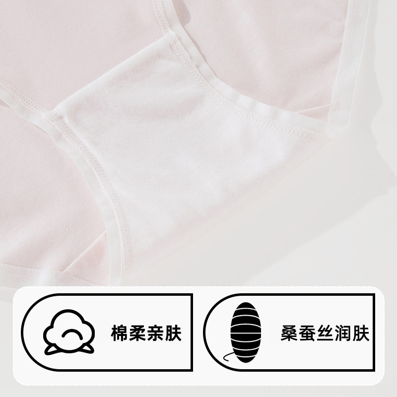雅黛俪女士内裤纯棉舒适透气含桑蚕丝裆底甜美纯色女生三角裤头