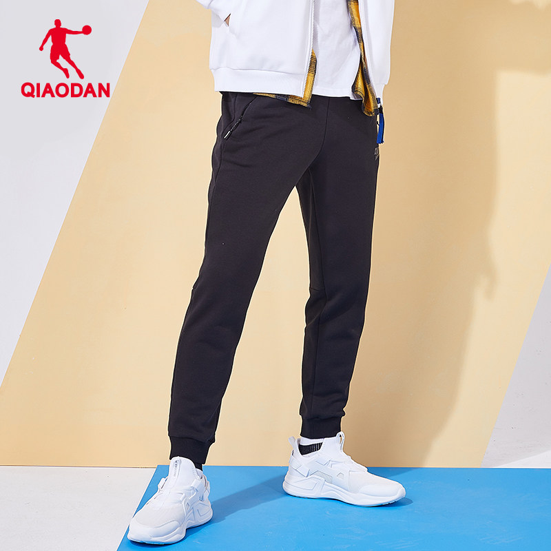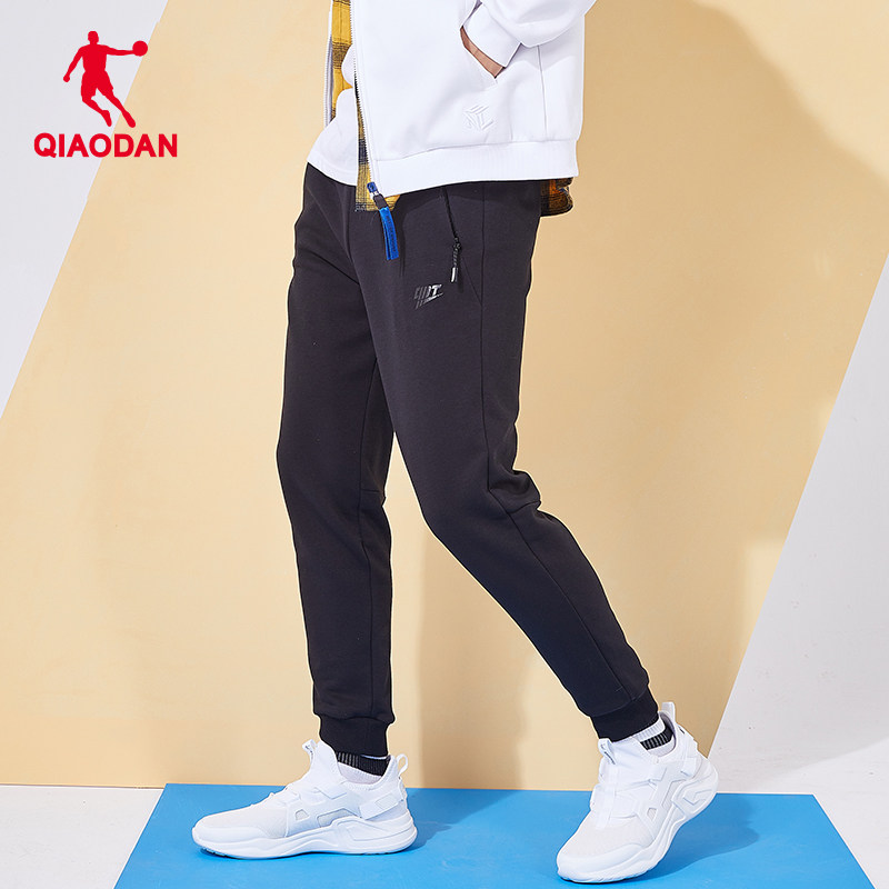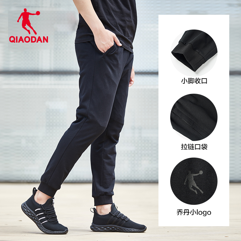 乔丹运动长裤男2025冬季新款男士宽松休闲裤针织长裤收口卫裤黑色