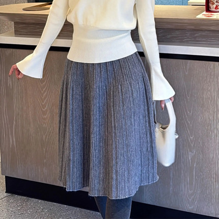 欧货高端定制高级灰针织大码半身裙女2026早春新款温柔风A字裙子