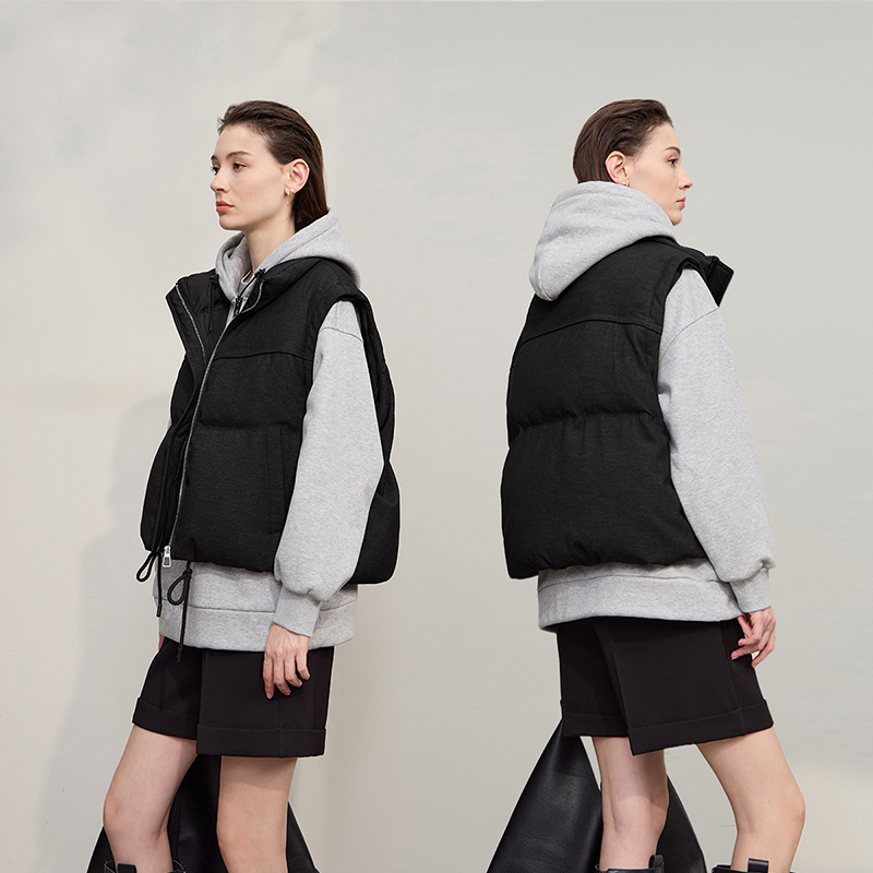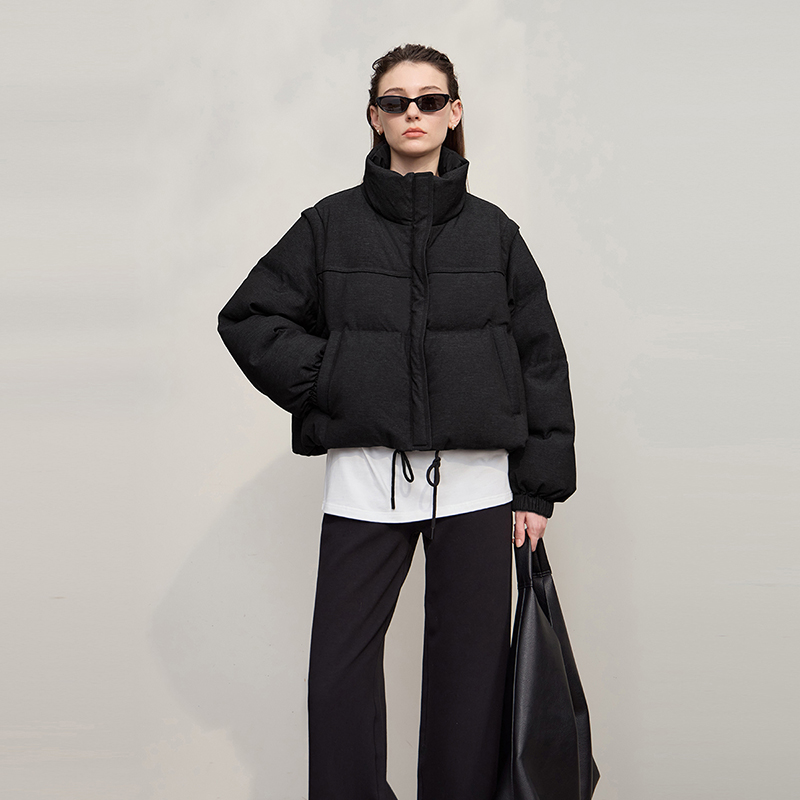 Amii2025冬新款温暖拉链可拆卸袖子两穿面包服宽松短款羽绒服女