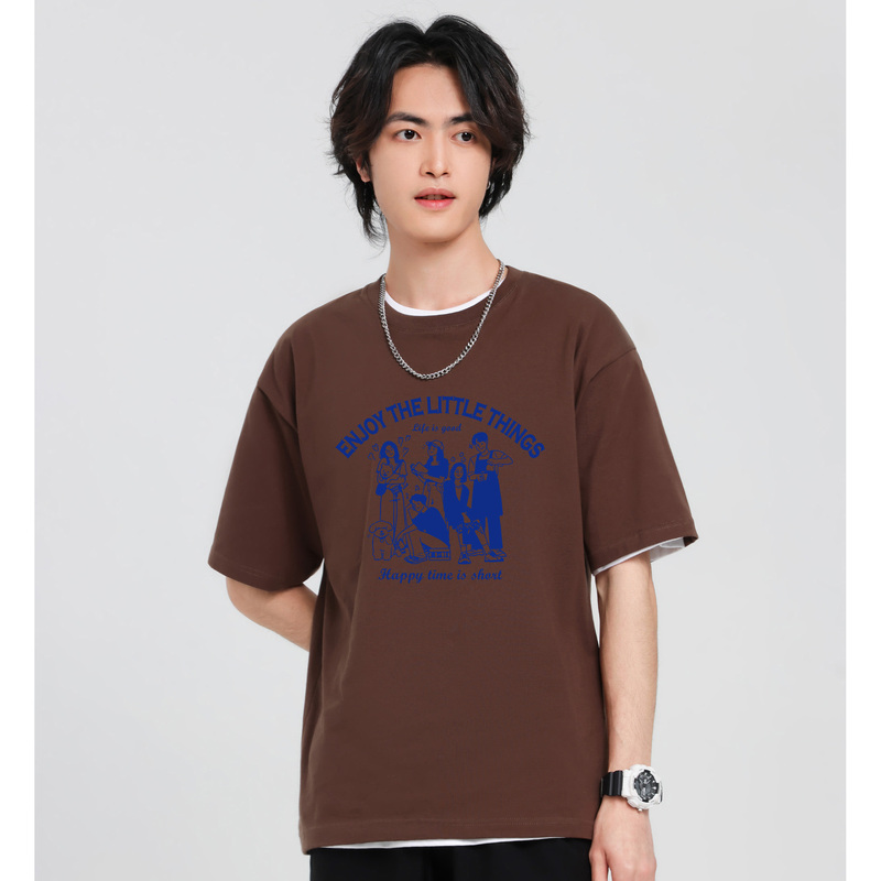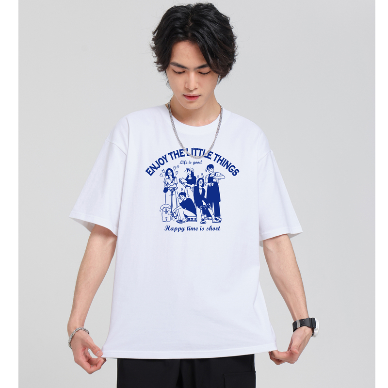 DS真维斯男装2023夏新款黑色休闲宽松纯棉打底衫圆领印花短袖T