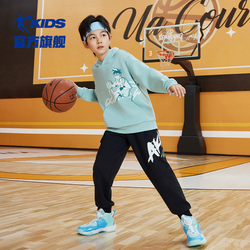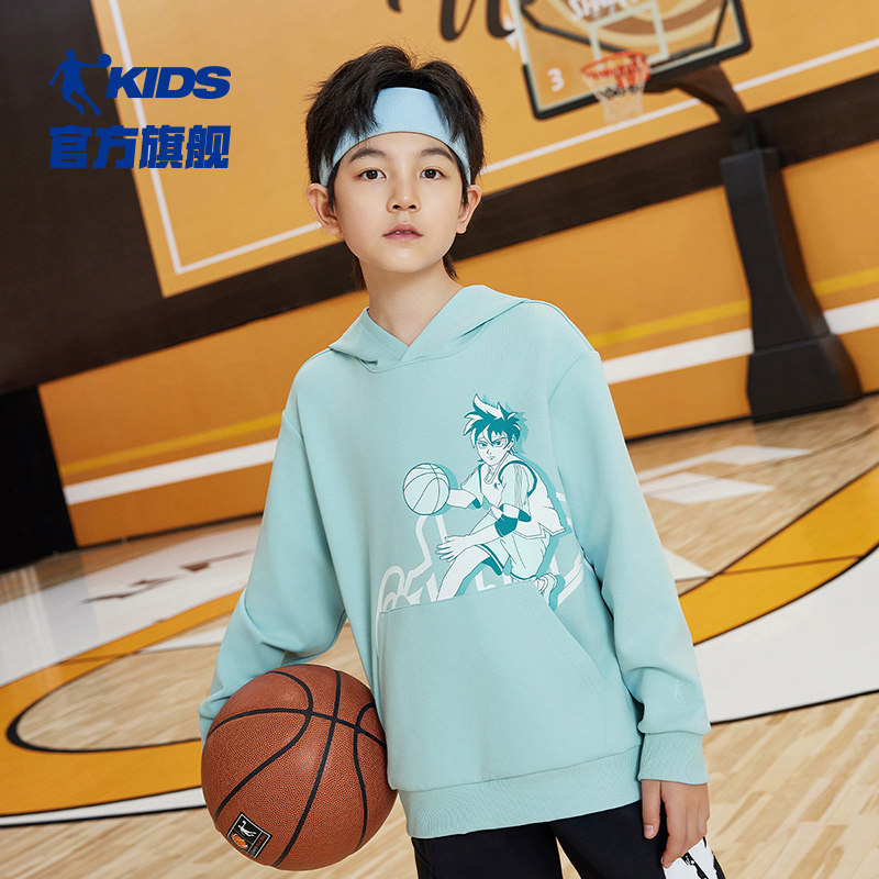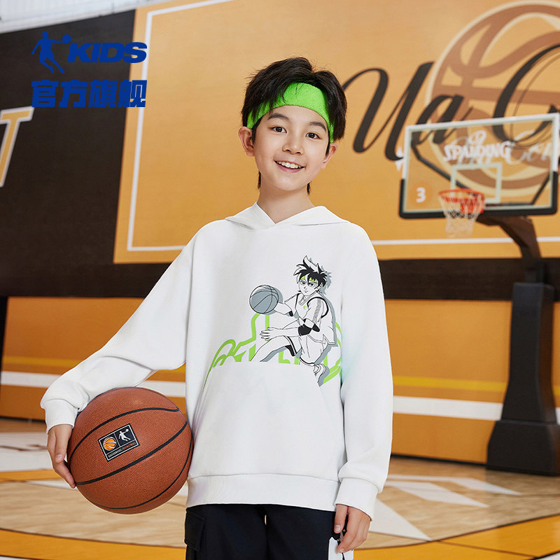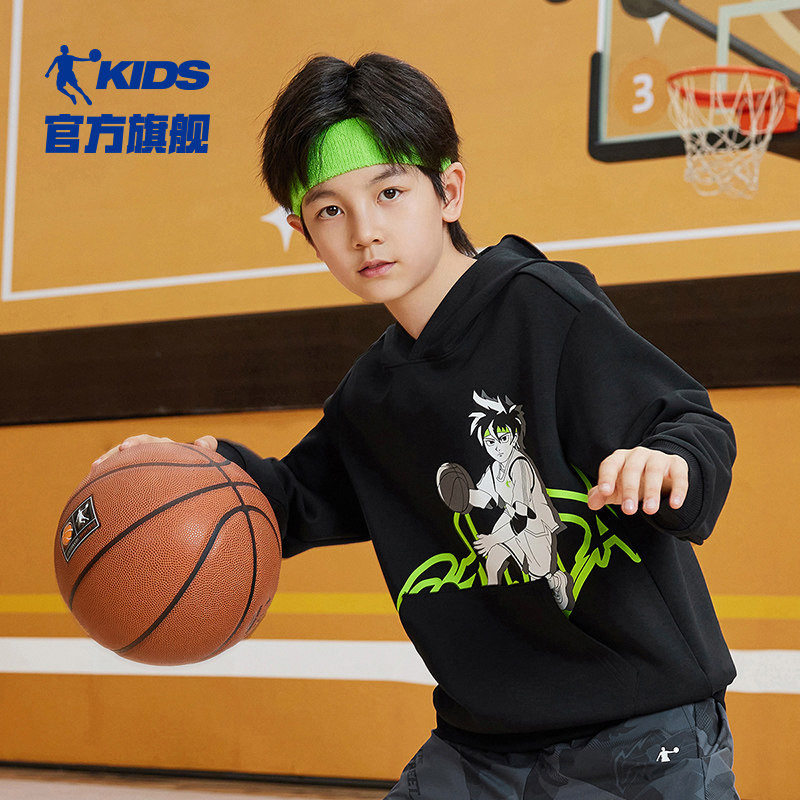 中国乔丹童装男童卫衣春秋款2025新款大童连帽套头衫儿童运动上衣