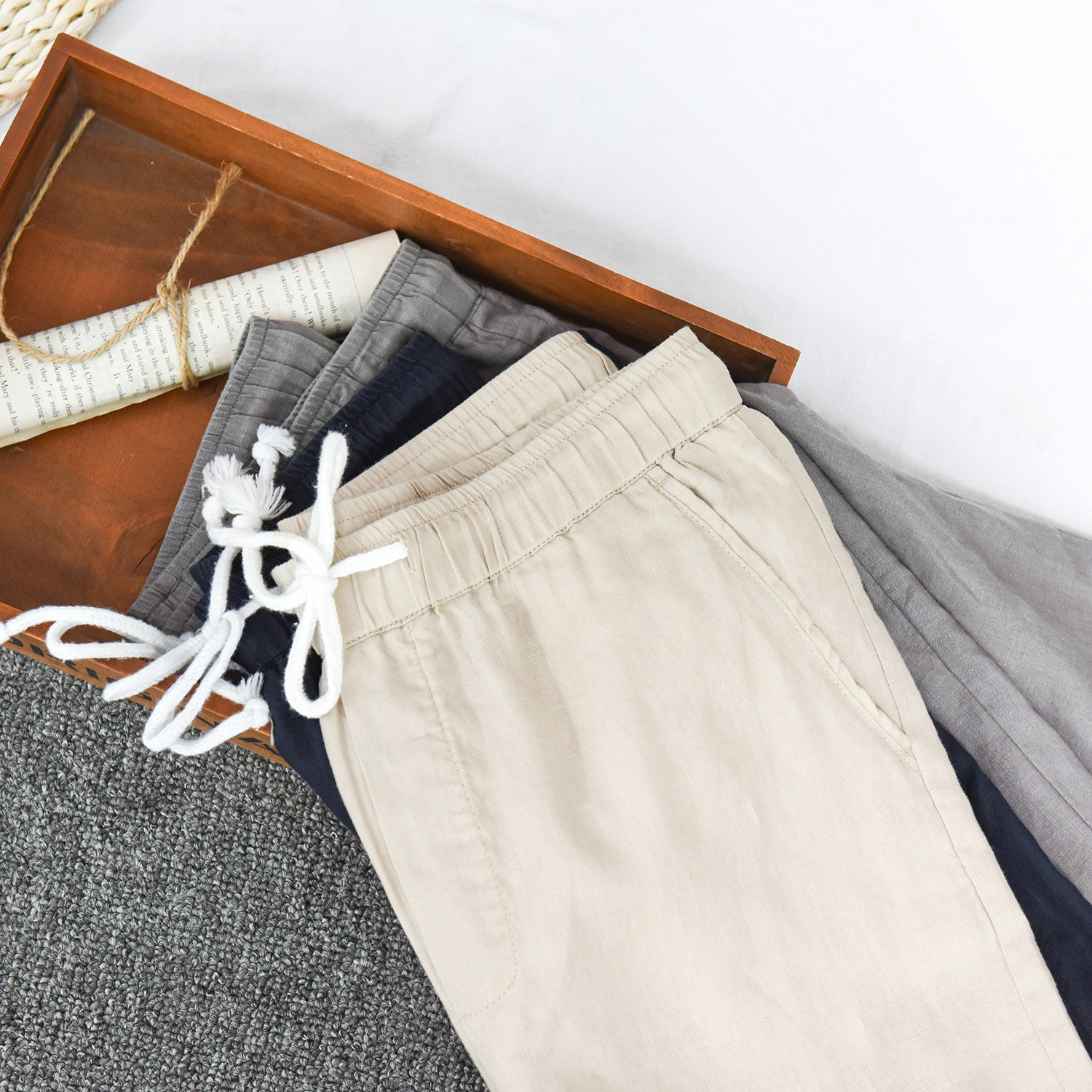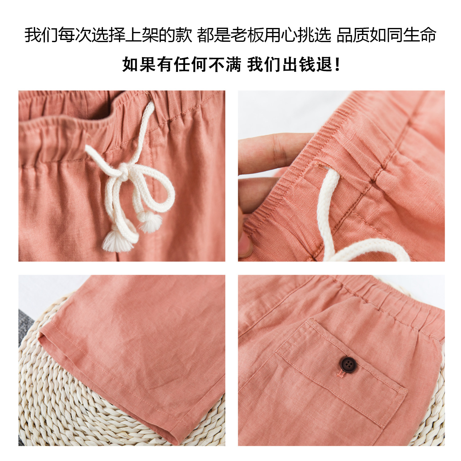 极麻清新松紧腰直筒亚麻休闲短裤男士夏季抽绳沙滩宽松棉麻五分裤