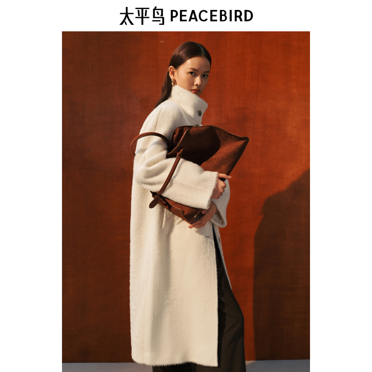 【断码秒杀】太平鸟大师甄绒系列苏力羊驼毛大衣长款Suri白色外套
