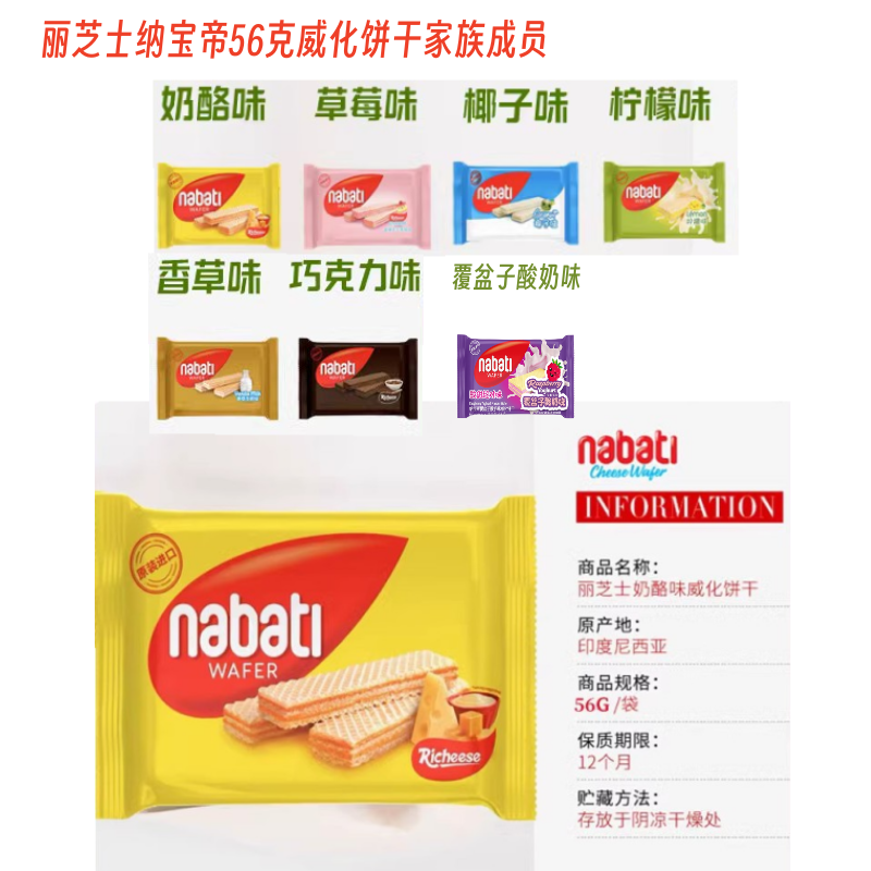 进口丽芝士nabatl纳宝帝威化饼干夹心饼休闲零食解馋正品56g袋装