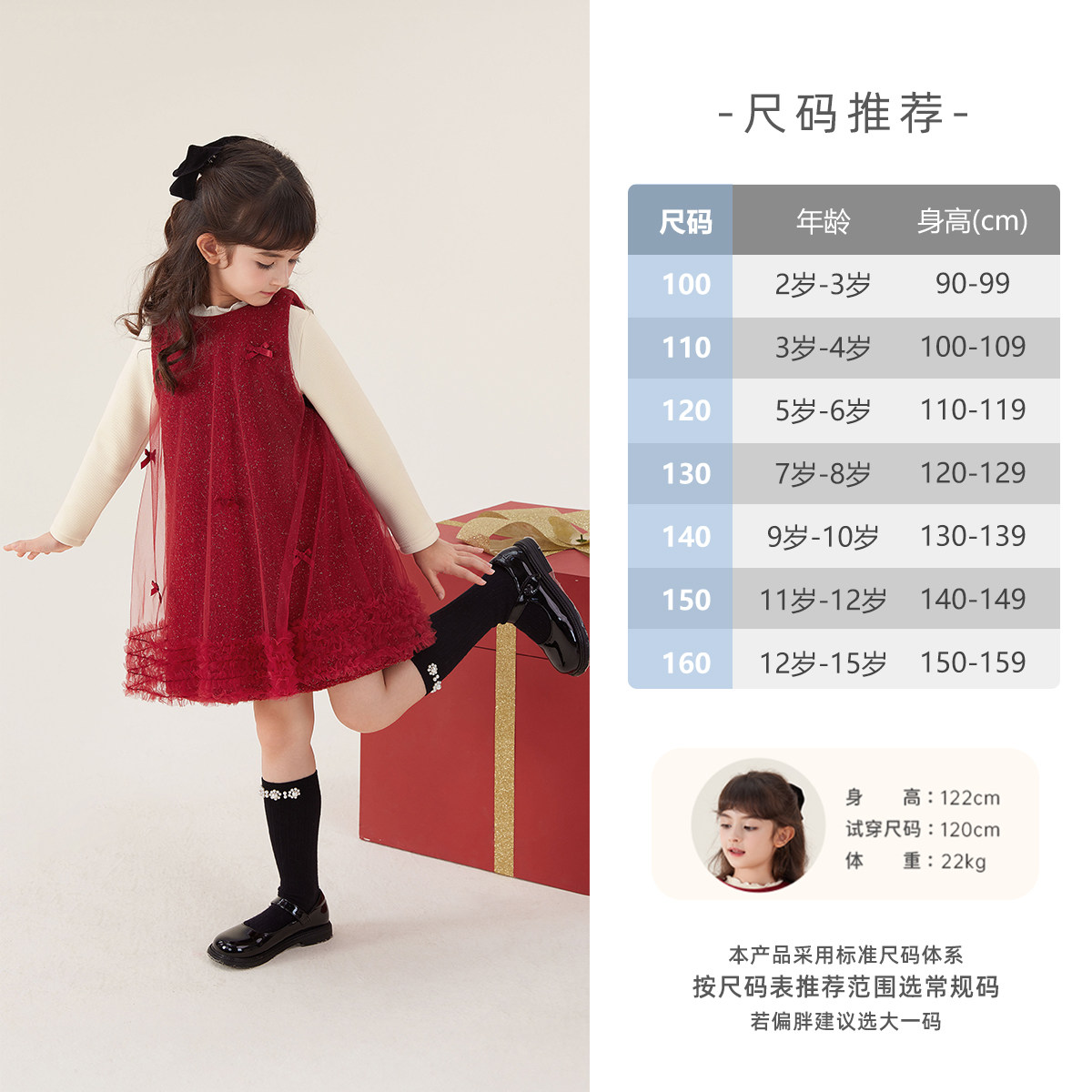 [抗菌锁温]女童套装秋加厚儿童裙子加绒上衣两件套小宝宝红色套裙